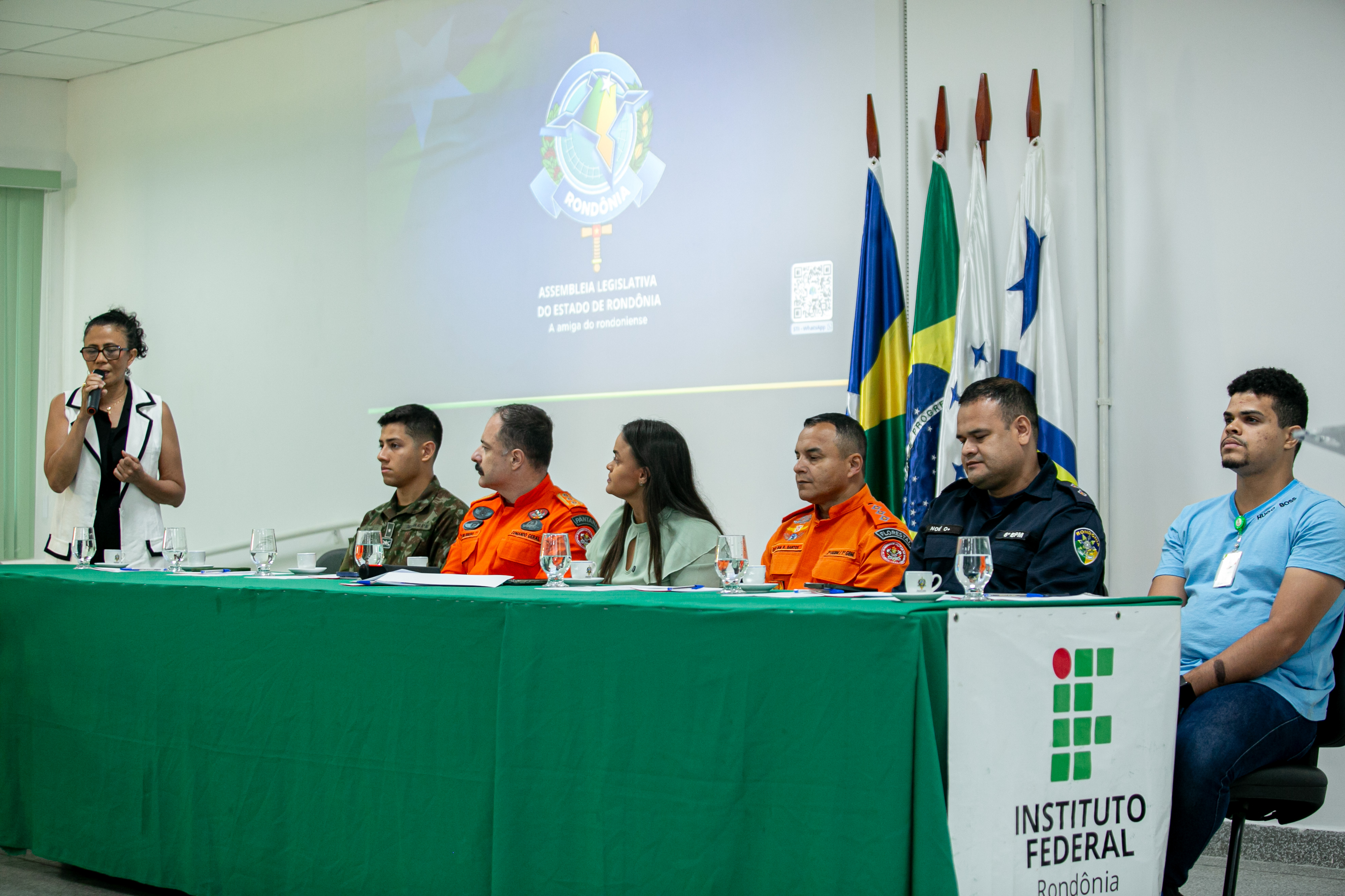 Realizada no auditório do Instituto Federal de Educação, Ciência e Tecnologia de Rondônia (Ifro) (Foto: Thyago Lorentz | ALE/RO)Durante a cerimônia, o subcomandante Geral do Corpo de Bombeiros Militar do estado de Rondônia, coronel Ribeiro, agradeceu a honraria em nome da corporação e ressaltou o valor do reconhecimento institucional. "Receber este Voto de Louvor da Assembleia Legislativa é motivo de orgulho para toda tropa. Nosso trabalho é servir, proteger, e salvar vidas, e ver esse esforço reconhecido nos motiva ainda mais. A atuação na enchente foi um desafio coletivo, e cada bombeiro envolvido demonstrou, mais uma vez, o compromisso com a população rondoniense", declarou.