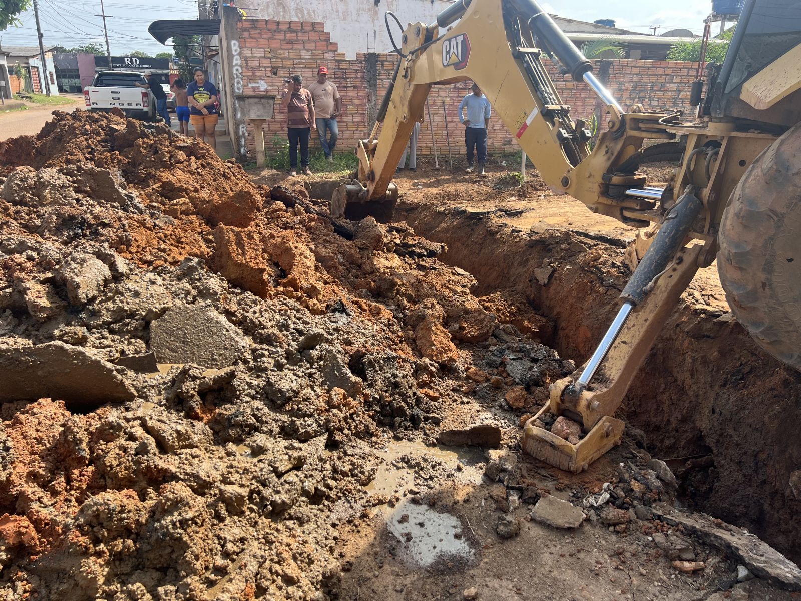 Nove novas manilhas estão sendo instaladas para substituir a estrutura antiga, que já não atendia ao volume de água que passa pelo local. As equipes da Seinfra realizaram a abertura da área onde estavam as manilhas comprometidas e iniciaram a remoção do material deteriorado. As manilhas antigas estavam danificadas e entupidas por barro, bloqueando a passagem da água e contribuindo para os alagamentos.